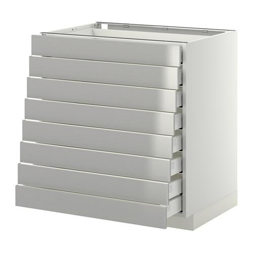 МЕТОД / МАКСИМЕРА Наполн шкаф 8 фронт/8 низк ящиков - белый, Гревста нержавеющ сталь, 80x60 см