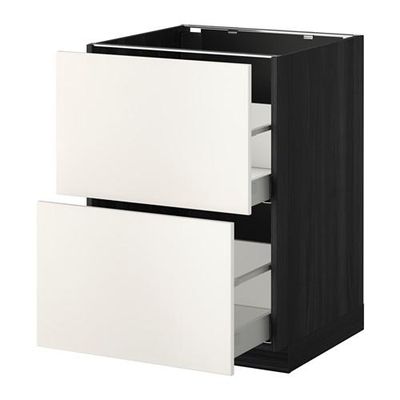 МЕТОД / МАКСИМЕРА Напольн шкаф 2фрнт/2выс ящ - 60x60 см, Веддинге белый, под дерево черный