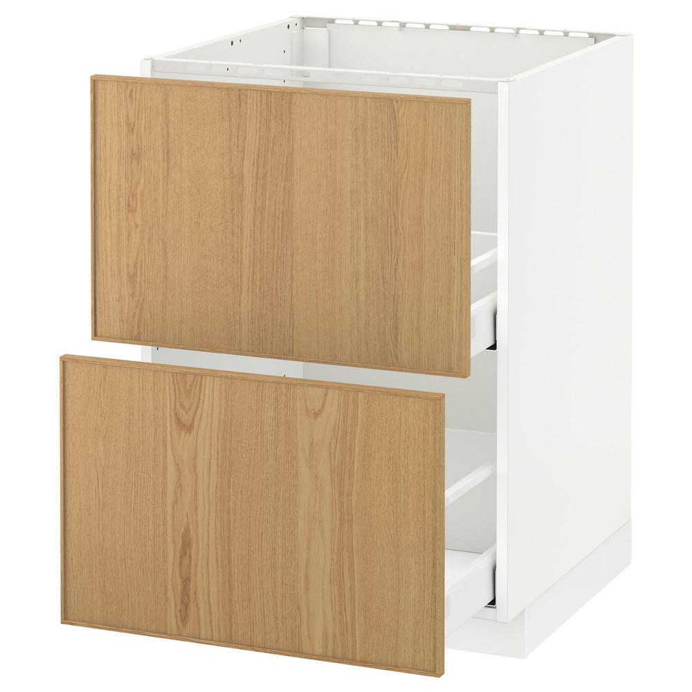 МЕТОД / МАКСИМЕРА Напольн шк п-мойку+2фрнт пнл/2 ящ - белый, Экестад дуб, 60x60 см