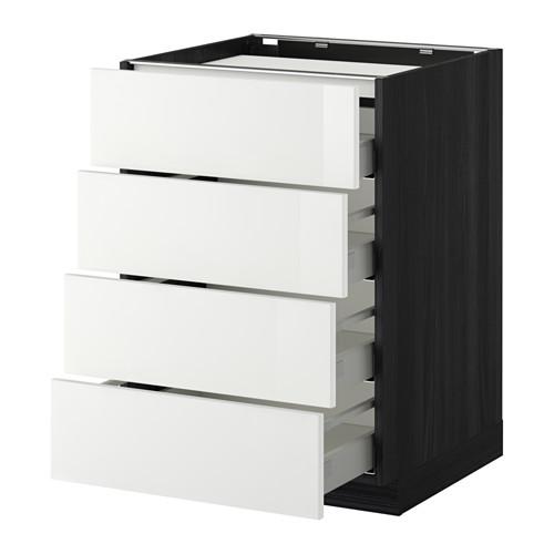 МЕТОД / МАКСИМЕРА Напольн шкаф/4фронт пнл/4ящика - под дерево черный, Рингульт глянцевый белый, 60x60 см