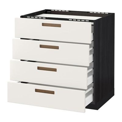 МЕТОД / МАКСИМЕРА Напольн шкаф/4фронт пнл/4ящика - 80x60 см, Мэрста белый, под дерево черный