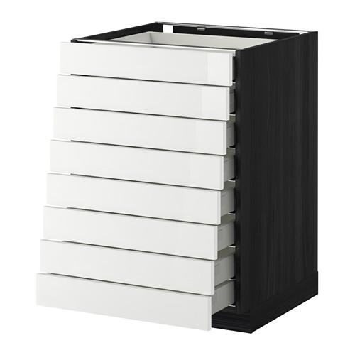 МЕТОД / МАКСИМЕРА Наполн шкаф 8 фронт/8 низк ящиков - под дерево черный, Рингульт глянцевый белый, 60x60 см