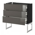 МЕТОД / МАКСИМЕРА Нплн шк 3 фрнт/3 средн ящика - 80x60x60 см, Рингульт глянцевый серый, под дерево черный