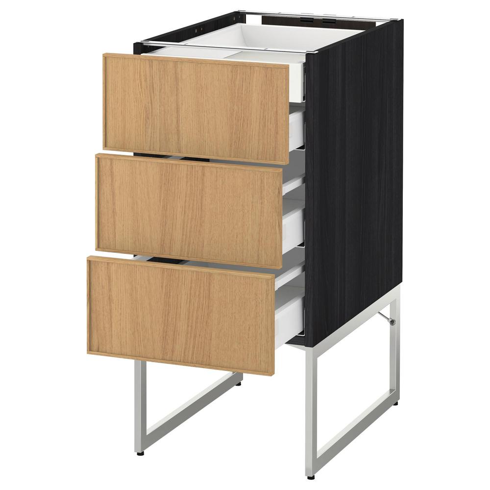 МЕТОД / МАКСИМЕРА Напольн шкаф 3фронт пнл/2низ/2ср ящ - под дерево черный, Экестад дуб, 40x60x60 см