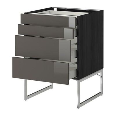 МЕТОД / МАКСИМЕРА Нплн шк 4 фронт/2 низк/2средн ящ - 60x60x60 см, Рингульт глянцевый серый, под дерево черный