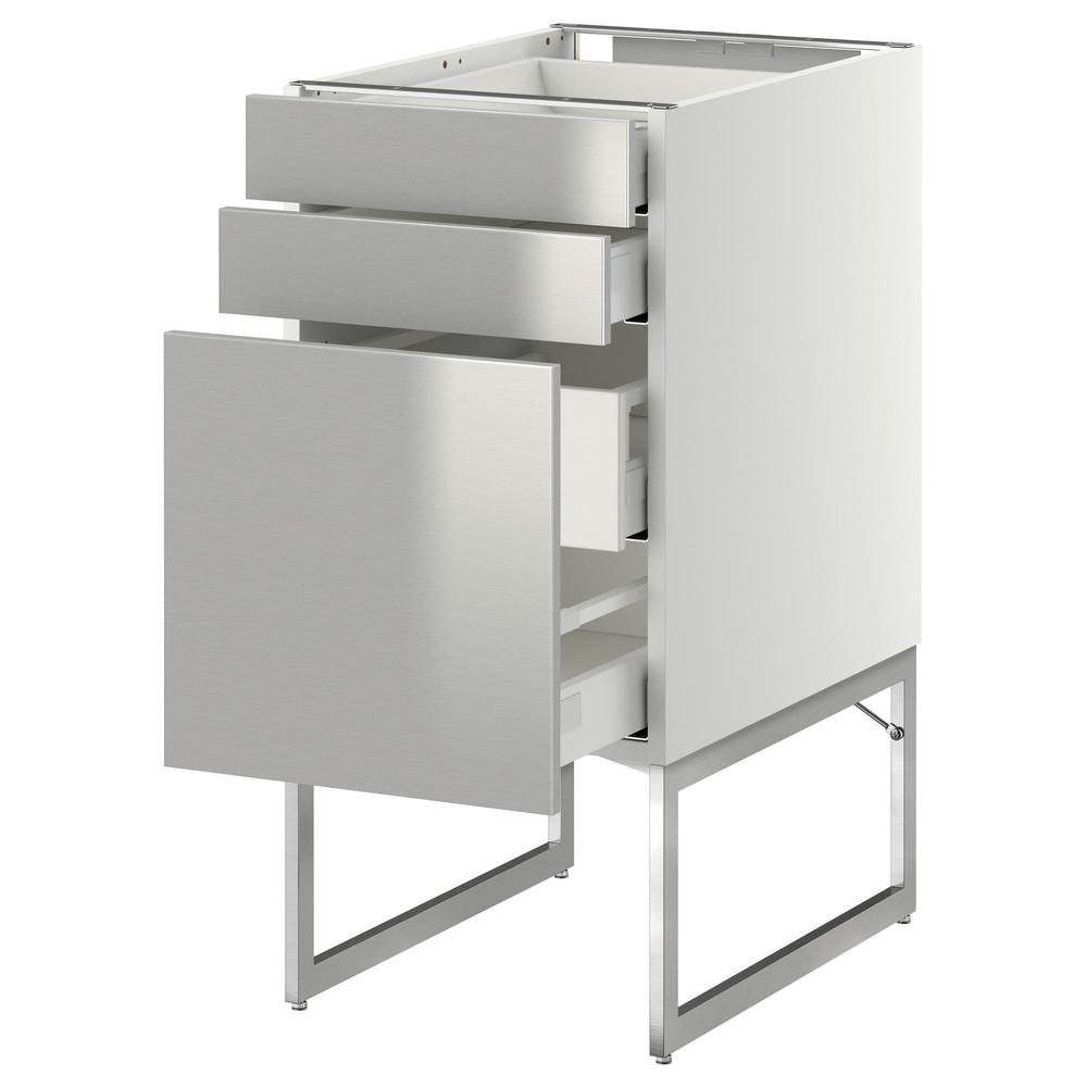 МЕТОД / МАКСИМЕРА Напольн шкаф 3фронт пнл/2низ/2ср ящ - белый, Гревста нержавеющ сталь, 40x60x60 см