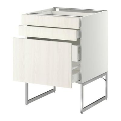 МЕТОД / МАКСИМЕРА Напольн шкаф 3фронт пнл/2низ/2ср ящ - 60x60x60 см, Росдаль белый ясень, белый
