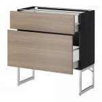 МЕТОД / МАКСИМЕРА Напольн шкаф 2фронт пнл/2низ/1вс ящ - 80x60x60 см, Брокхульт под грецкий орех светло-серый, под дерево черный