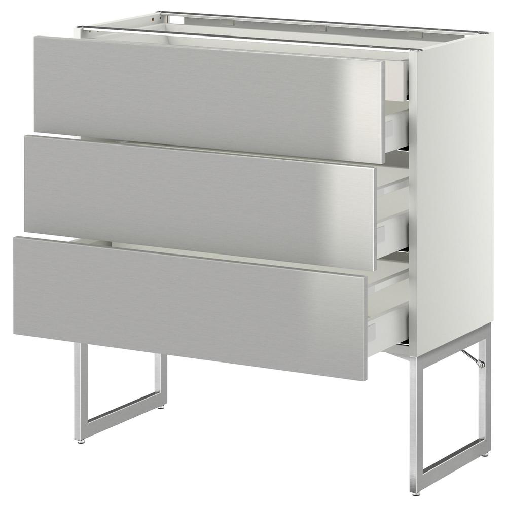 МЕТОД / МАКСИМЕРА Напольн шкаф 3фронт пнл/2низ/2ср ящ - белый, Гревста нержавеющ сталь, 80x37x60 см