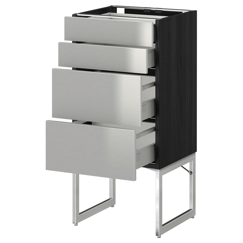 МЕТОД / МАКСИМЕРА Нплн шк 4 фронт/2 низк/2средн ящ - под дерево черный, Гревста нержавеющ сталь, 40x37x60 см