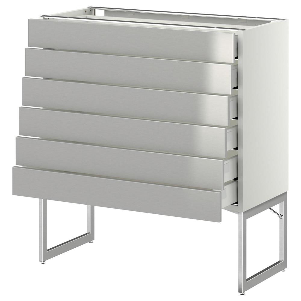 МЕТОД / МАКСИМЕРА Напольн шкаф 6фронт пнл/6 низ ящ - белый, Гревста нержавеющ сталь, 80x37x60 см