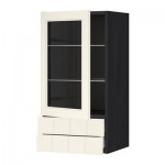 МЕТОД / МАКСИМЕРА Навесной шкаф/стекл дверца/2 ящика - 40x100 см, под дерево черный, Хитарп белый с оттенком