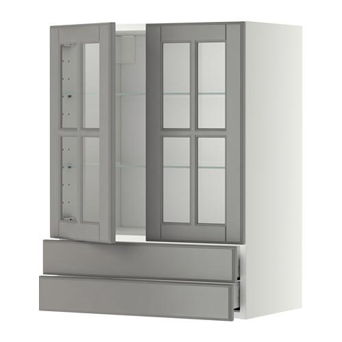 МЕТОД / МАКСИМЕРА Навесной шкаф/2 стек дв/2 ящика - белый, Будбин серый, 60x80 см