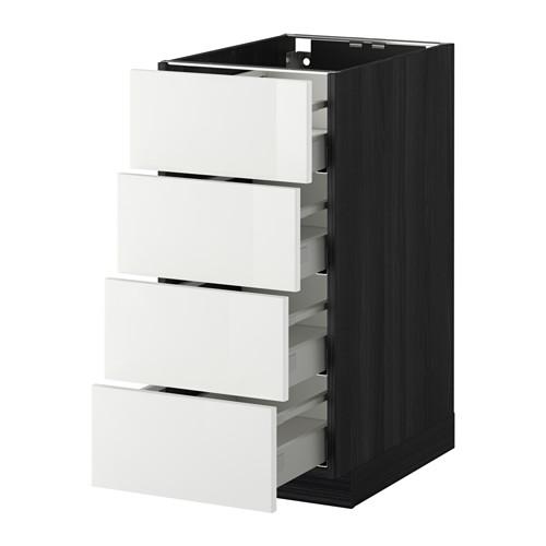 МЕТОД / МАКСИМЕРА Напольн шкаф 4 фронт панели/4 ящика - под дерево черный, Рингульт глянцевый белый, 40x60 см