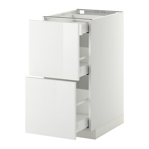 МЕТОД / МАКСИМЕРА Напольный шкаф/2фасада/3ящика - белый, Рингульт глянцевый белый, 40x60 см