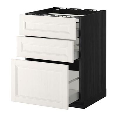 МЕТОД / МАКСИМЕРА Напольн шкаф/3фронт пнл/3ящика - 60x60 см, Лаксарби белый, под дерево черный