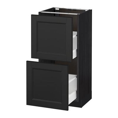 МЕТОД / МАКСИМЕРА Напольный шкаф с 2 ящиками - 40x37 см, Лаксарби черно-коричневый, под дерево черный