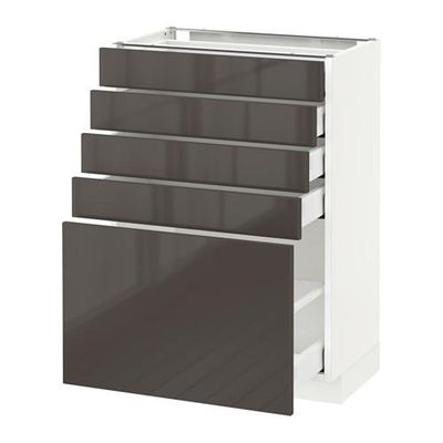 МЕТОД / МАКСИМЕРА Напольный шкаф с 5 ящиками - 60x37 см, Рингульт глянцевый серый, белый