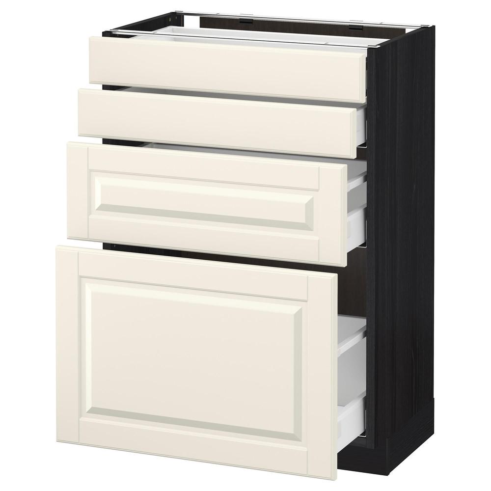 МЕТОД / МАКСИМЕРА Напольн шкаф 4 фронт панели/4 ящика - под дерево черный, Будбин белый с оттенком, 60x37 см