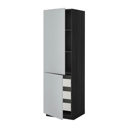 МЕТОД / МАКСИМЕРА Высокий шкаф+полки/3 ящика/2 дверцы - 60x60x200 см, Веддинге серый, под дерево черный