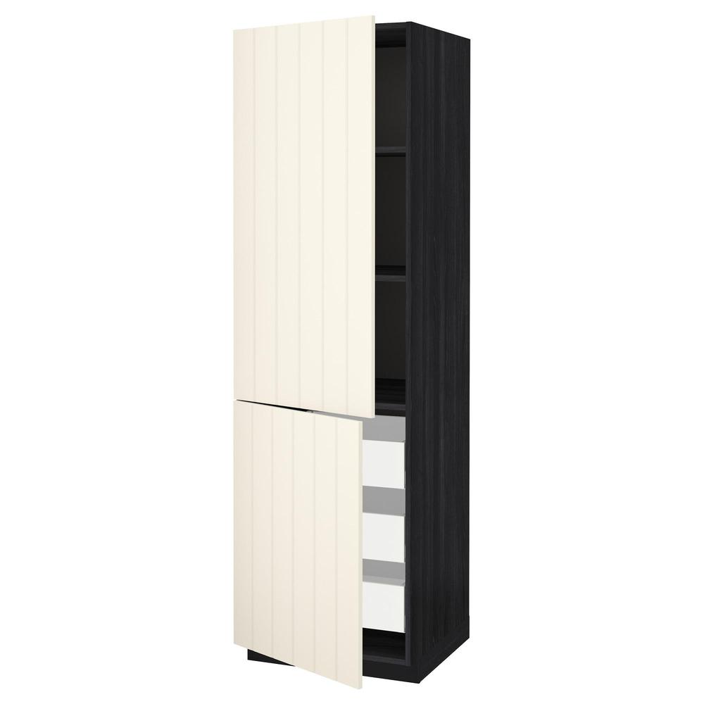 МЕТОД / МАКСИМЕРА Высокий шкаф+полки/3 ящика/2 дверцы - под дерево черный, Хитарп белый с оттенком, 60x60x200 см