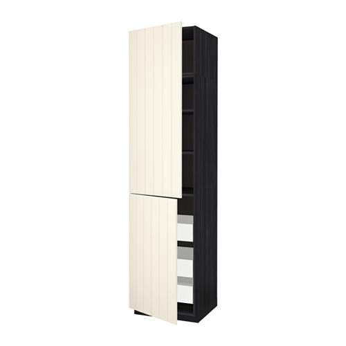МЕТОД / МАКСИМЕРА Высокий шкаф+полки/3 ящика/2 дверцы - под дерево черный, Хитарп белый с оттенком, 60x60x240 см