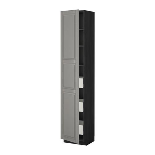 МЕТОД / МАКСИМЕРА Высокий шкаф с ящиками - под дерево черный, Будбин серый, 40x37x200 см