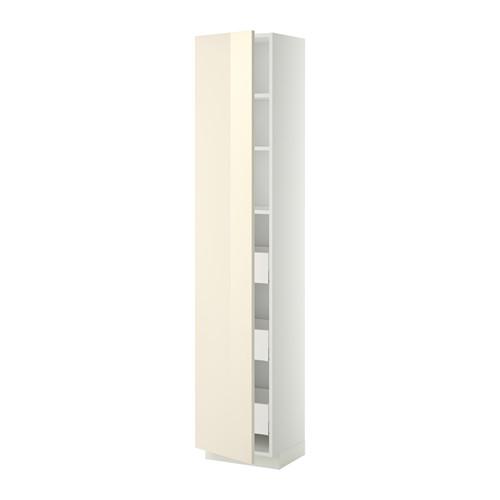 МЕТОД / МАКСИМЕРА Высокий шкаф с ящиками - 40x37x200 см, Рингульт глянцевый кремовый, белый