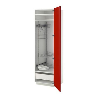 МЕТОД / МАКСИМЕРА Выс шк с отд д/акс д/убрк - 60x60x200 см, Рингульт глянцевый красный, белый