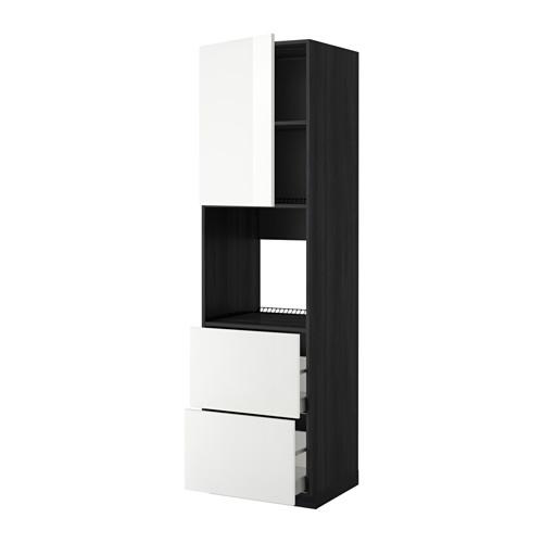 МЕТОД / МАКСИМЕРА Выс шк д/дхвк+двр/2фрнт/2выс ящ - под дерево черный, Рингульт глянцевый белый, 60x60x220 см