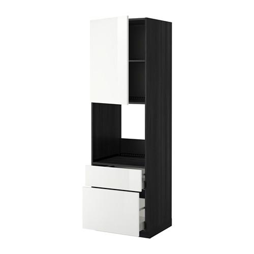 МЕТОД / МАКСИМЕРА Высок шкаф д духов+дверь/2 ящика - под дерево черный, Рингульт глянцевый белый, 60x60x200 см