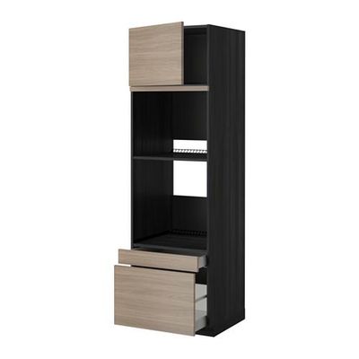 МЕТОД / МАКСИМЕРА Выс шкаф д/дхвк/комб дхвк+двр/2ящ - 60x60x200 см, Брокхульт под грецкий орех светло-серый, под дерево черный