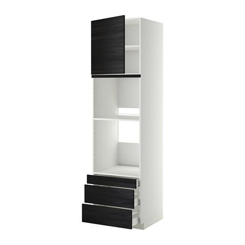 МЕТОД / МАКСИМЕРА Выс шкаф д/дхвк/комб дхвк+двр/3ящ - белый, Тингсрид под дерево черный, 60x60x220 см