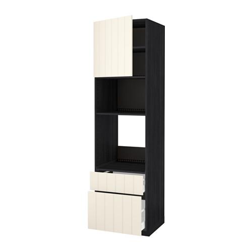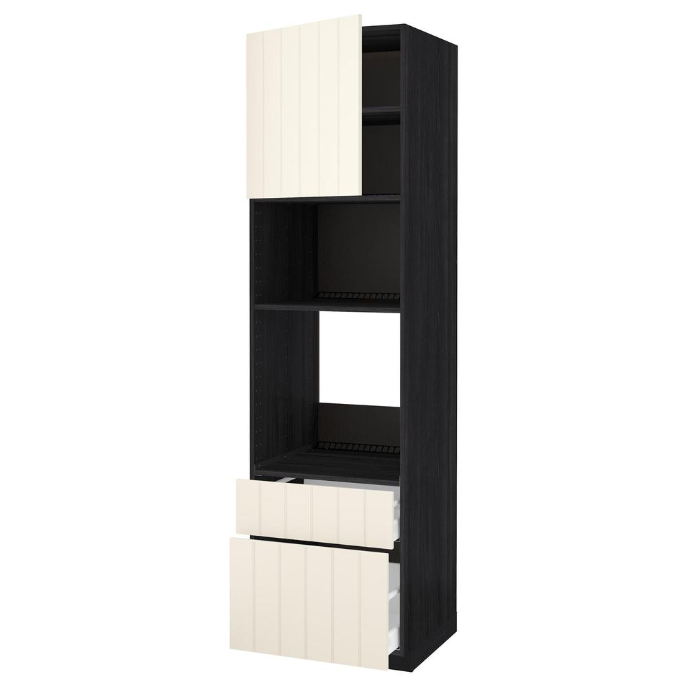 МЕТОД / МАКСИМЕРА Высок шкаф д/духовки/СВЧ/дверца/2ящ - под дерево черный, Хитарп белый с оттенком, 60x60x220 см