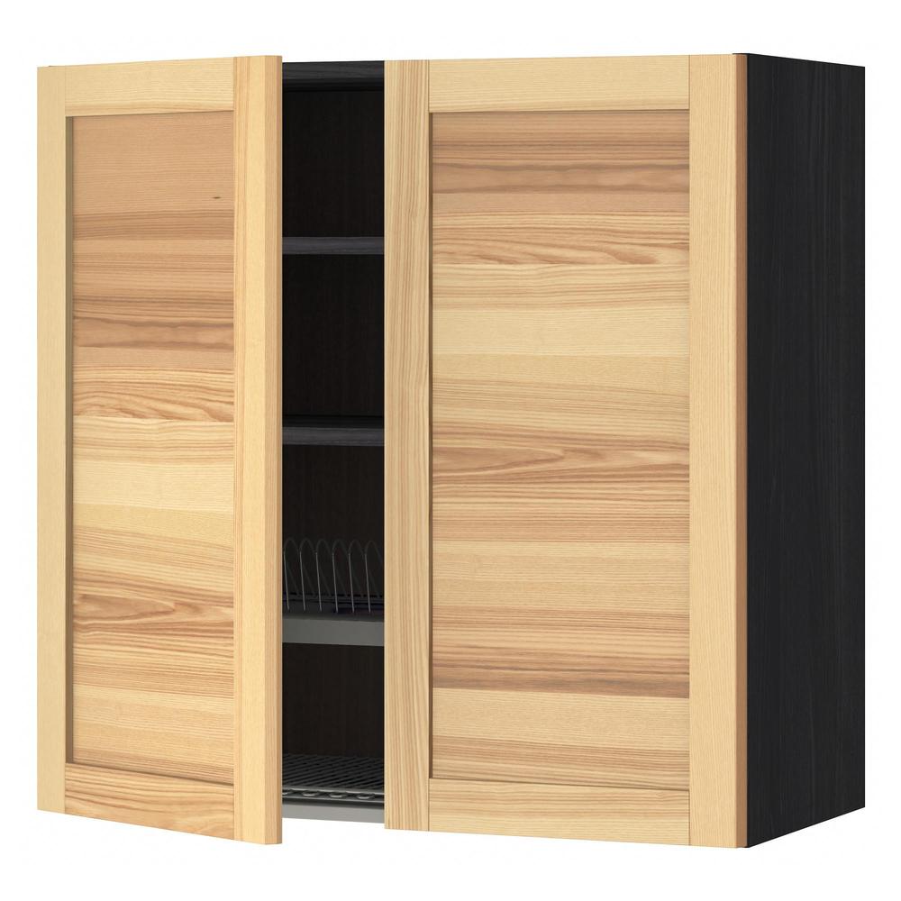 МЕТОД Навесной шкаф с посуд суш/2 дврц - под дерево черный, Торхэмн естественный ясень, 80x80 см