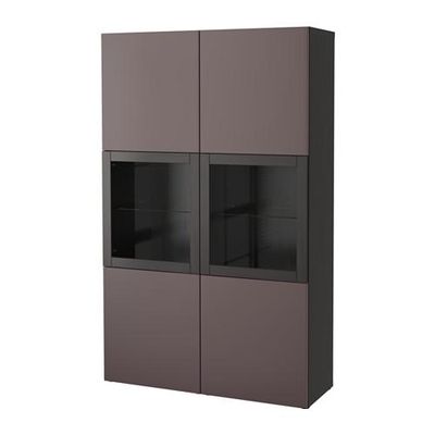 БЕСТО Комбинация д/хранения+стекл дверц - черно-коричневый/Вальвикен темно-коричневый, прозрачное стекло