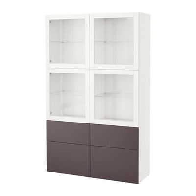 БЕСТО Комбинация д/хранения+стекл дверц - белый/Вальвикен темно-коричневый, прозрачное стекло, направляющие ящика, плавно закр