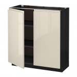 МЕТОД Напол шкаф с полками/2двери - под дерево черный, Воксторп глянцевый светло-бежевый, 80x60x60 см