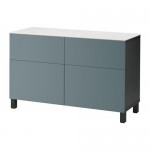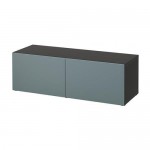 БЕСТО Стеллаж с дверьми - черно-коричневый/Вальвикен серо-бирюзовый