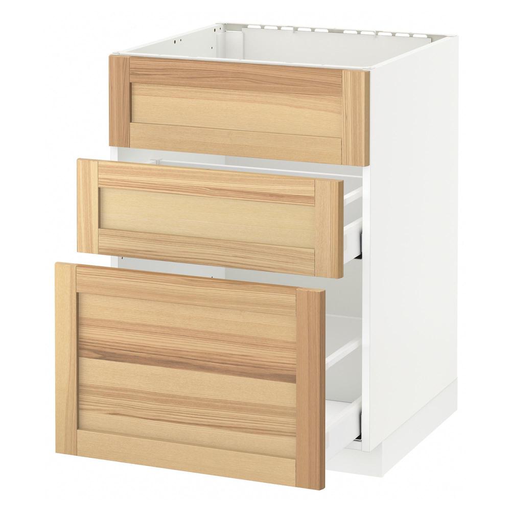МЕТОД / МАКСИМЕРА Напольн шк п-мойку+3фрнт пнл/2ящ - белый, Торхэмн естественный ясень, 60x60 см