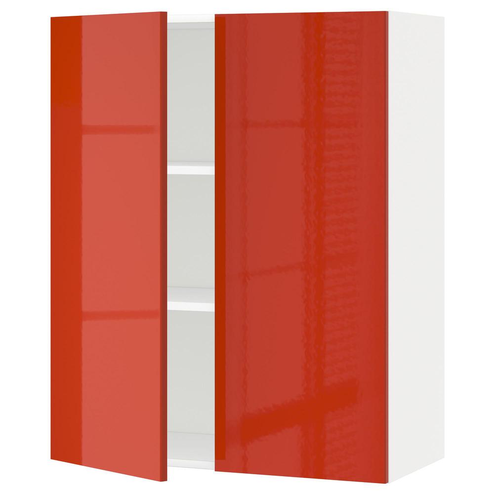 МЕТОД Навесной шкаф с полками/2дверцы - белый, Ерста глянцевый оранжевый, 80x100 см