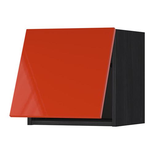 МЕТОД Горизонтальный навесной шкаф - под дерево черный, Ерста глянцевый оранжевый, 40x40 см