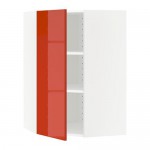МЕТОД Угловой навесной шкаф с полками - белый, Ерста глянцевый оранжевый, 88x37x60 см