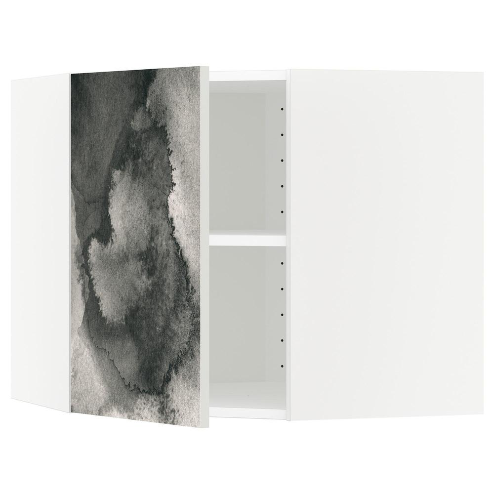 МЕТОД Угловой навесной шкаф с полками - белый, Кальвиа с печатным рисунком, 68x60 см