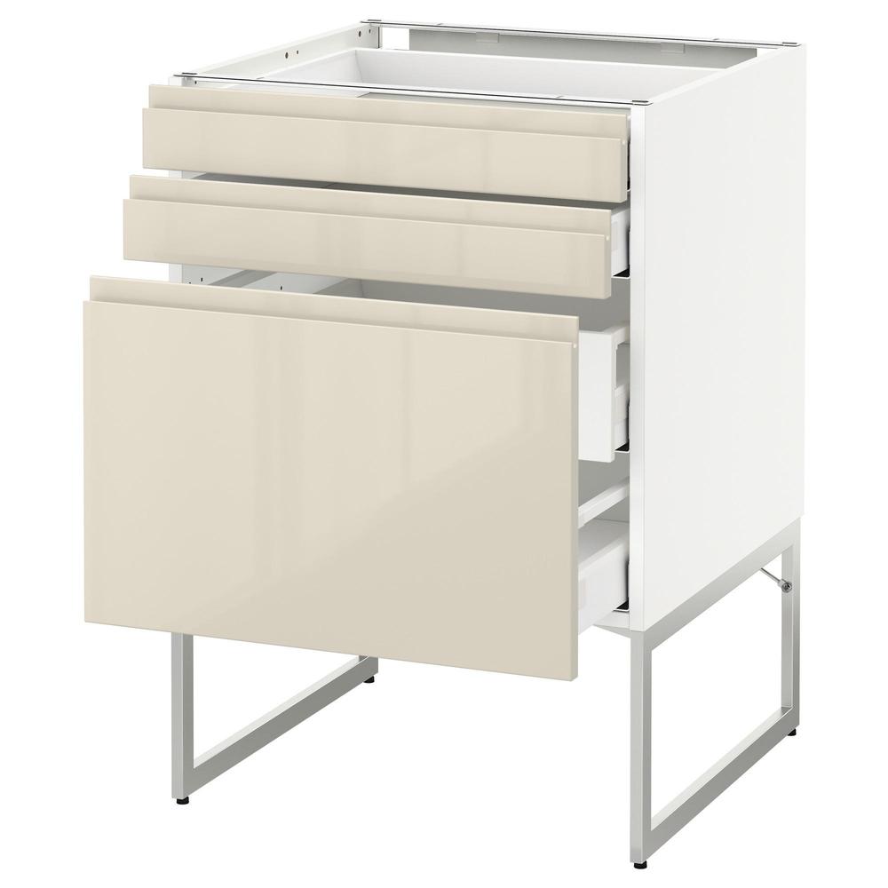 МЕТОД / МАКСИМЕРА Напольн шкаф 3фронт пнл/2низ/2ср ящ - белый, Воксторп глянцевый светло-бежевый, 60x60x60 см