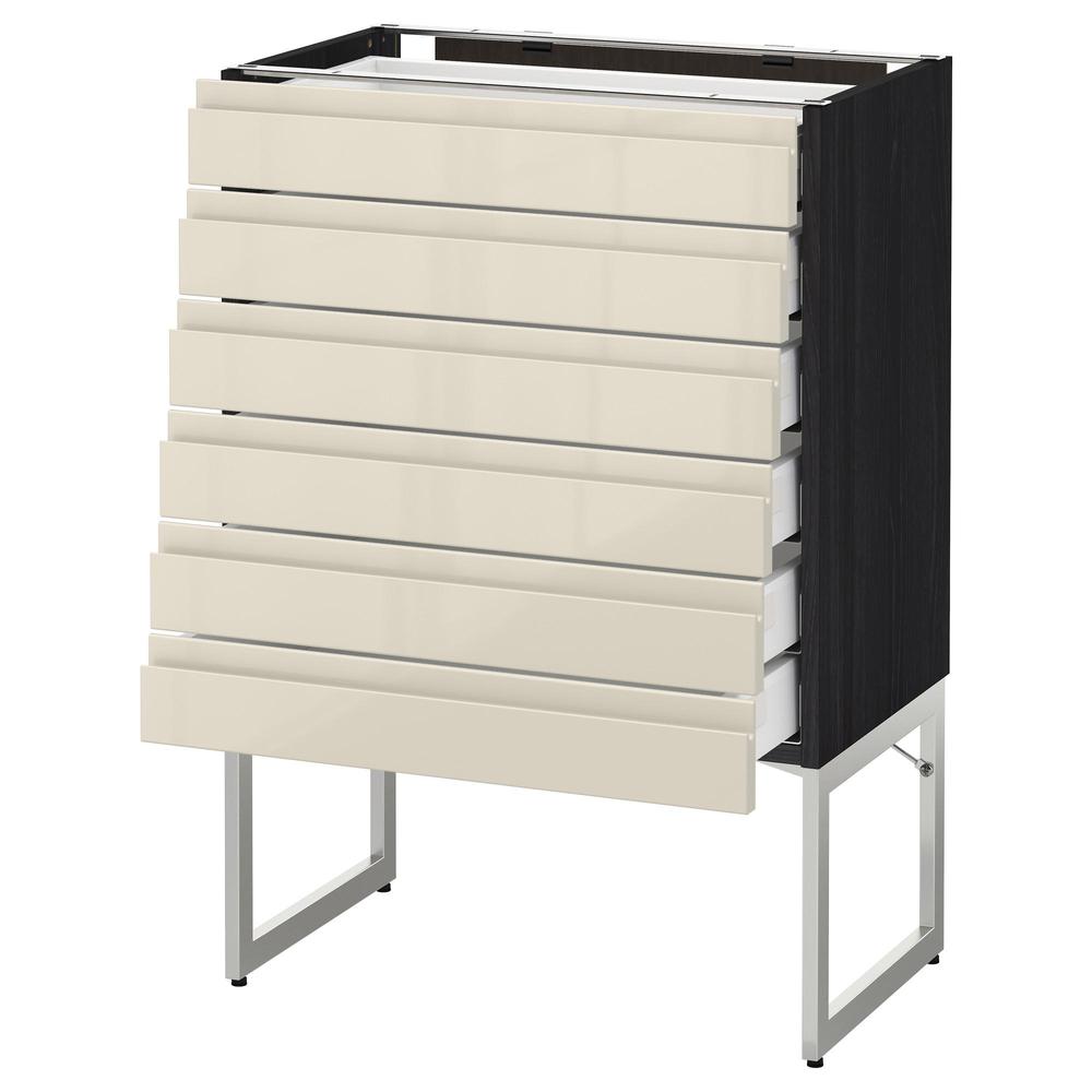 МЕТОД / МАКСИМЕРА Напольн шкаф 6фронт пнл/6 низ ящ - под дерево черный, Воксторп глянцевый светло-бежевый, 60x37x60 см