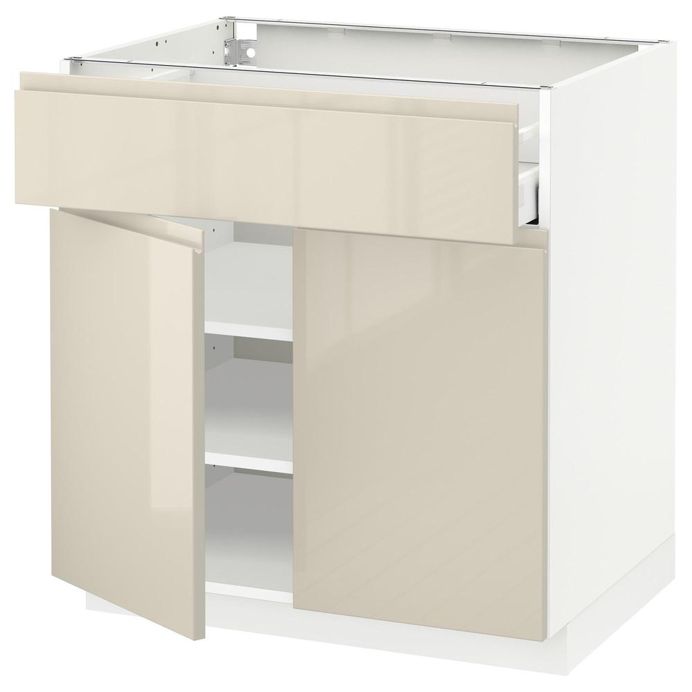 МЕТОД / МАКСИМЕРА Напольный шкаф+ящик/2дверцы - белый, Воксторп глянцевый светло-бежевый, 80x60 см