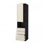 МЕТОД / МАКСИМЕРА Высокий шкаф д/СВЧ+дверца/3 ящика - под дерево черный, Рингульт глянцевый белый, 60x60x220 см