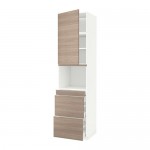 МЕТОД / МАКСИМЕРА Высокий шкаф д/СВЧ/дверца/3ящика - белый, Брокхульт под грецкий орех светло-серый, 60x60x200 см