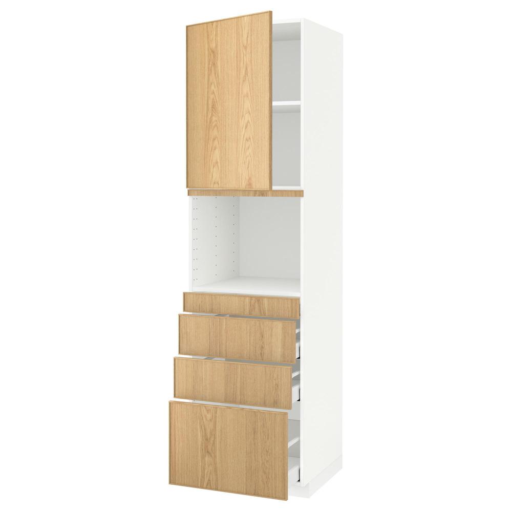 МЕТОД / МАКСИМЕРА Высокий шкаф д/СВЧ/дверца/4ящика - белый, Экестад дуб, 60x60x220 см